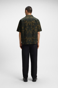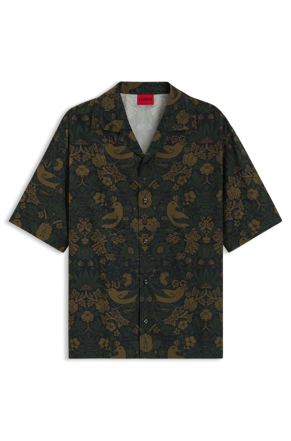 SIZE AND FIT The model wears a size M and is 6'2" tall with a, 34" chest, 29" waist and 35" hips. DETAILS Espino - 50545377 Cut to a casual oversize fit, this HUGO Menswear shirt is available with tapestry or logo prints for statement impact. Breathable cotton poplin. Oversized fit Reverse lapels Short length Fit back length: 72 cm (28 inches) QUALITY & CARE INSTRUCTIONS Quality: 100% Cotton Do Not Dry Clean Do Not Tumble Dry Machine Wash Cold Do Not Bleach Iron Low Heat