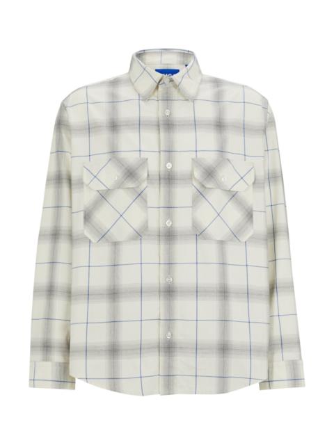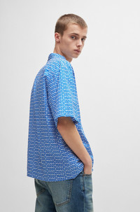 SIZE AND FIT The model wears a size M and is 6'2" tall with a, 35" chest, 27" waist and 35" hips. DETAILS Eligino - 50520079 Freshen up casual looks with this relaxed-fit short-sleeve shirt from HUGO Menswear, featuring a unique print. Cut from crisp, breathable pure-cotton poplin. Relaxed fit Reverse lapels Patch chest pockets Short length Fit back length: 71 cm (28 inches) QUALITY & CARE INSTRUCTIONS Iron Low Heat Machine Wash Cold Quality: 100% Cotton Do Not Bleach Do Not Tumble Dry Do Not Dry Clean