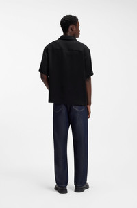 SIZE AND FIT The model wears a size M and is 6'2" tall with a, 35" chest, 27" waist and 35" hips. DETAILS Trimmed with a stacked logo, this HUGO Menswear shirt adds interest to casual looks. Oversize fit in fluid twill for everyday comfort. Oversized fit Reverse lapels Short length Fit back length: 72 cm (28 inches) Espino - 50560593 QUALITY & CARE INSTRUCTIONS Do Not Bleach Do Not Tumble Dry Hand Wash Only Material: 100% Lyocell Iron Low Heat Do Not Dry Clean