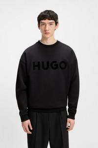 DETAILS Dinex - 50538778 Created in breathable French terry, this HUGO Menswear sweatshirt is an easy option for every day. Roomy fit with tonal decorative reflective logo print. Oversized fit Neckline: Crew neck Long sleeves Ribbed cuffs QUALITY & CARE INSTRUCTIONS Machine Wash Cold Gentle Do Not Dry Clean Do Not Tumble Dry Do Not Bleach Quality: 100% Cotton Iron Low Heat