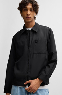 SIZE AND FIT The model wears a size L and is 6'3" tall with a, 35" chest, 31" waist and 35" hips. DETAILS Evalom - 50520058 An unconventional shirt by HUGO Menswear. Featuring a zip front and stacked logo on the chest pocket, this piece is cut to an oversize fit. Oversized fit Camp collar Patch chest pockets Barrel cuffs Short length QUALITY & CARE INSTRUCTIONS Iron Low Heat Quality: 100% Polyester Machine Wash Cold Do Not Bleach Do Not Tumble Dry Do Not Dry Clean