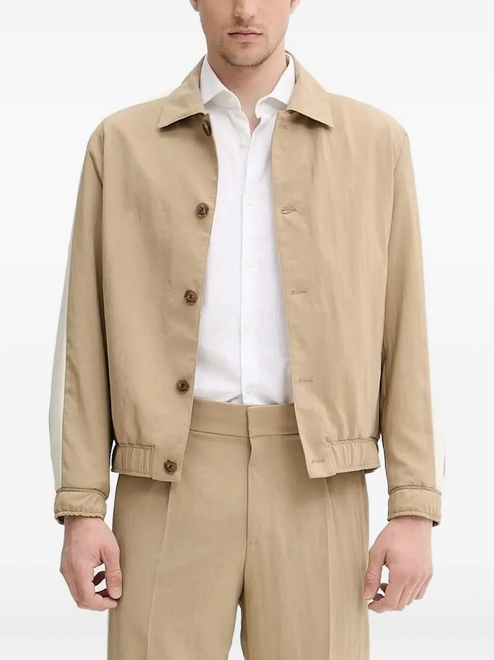 panelled buttoned jacket Highlights - Brown - Off-white panel - Button fastening - Welt pocket - Long sleeves - Collared neck Imported Composition Polyester 100% Washing instructions Read Manufacturer Guidelines