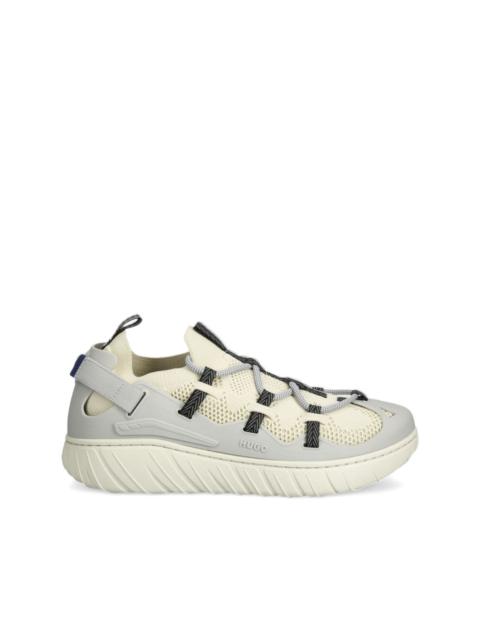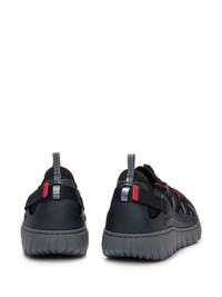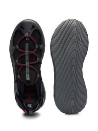 panelled slip-on sneakers Highlights - Black/red - Panelled design - Drawstring fastening - Double pull-tab at the opening - Slip-on style - Round toe - Flat rubber sole Imported Composition Outer: Polyester 100%, Polyurethane 100% Sole: Rubber 100% Lining: Fabric 100%