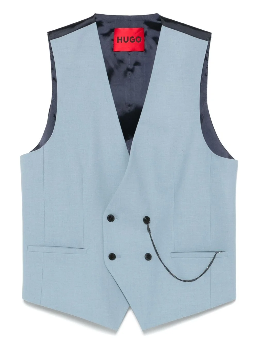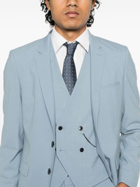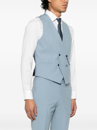 panelled waistcoat Highlights - Steel blue - Double-breasted button fastening - Two side welt pockets - V-neck - Sleeveless Imported Composition Outer: Wool 51%, Polyester 44%, Elastane 5% Lining: Polyester 100% SIZE & FIT Model measurements Height 6 ft 2 in(1.89 m) Bust/Chest 36.22 in(92 cm) Hips 37.79 in(96 cm) Waist 29.52 in(75 cm) FittingInformation Designed for a slim fit, offering a comfortable fit that sits just away from the body The adjustable tabs allow for fitted preferences Made from a midweight fabric