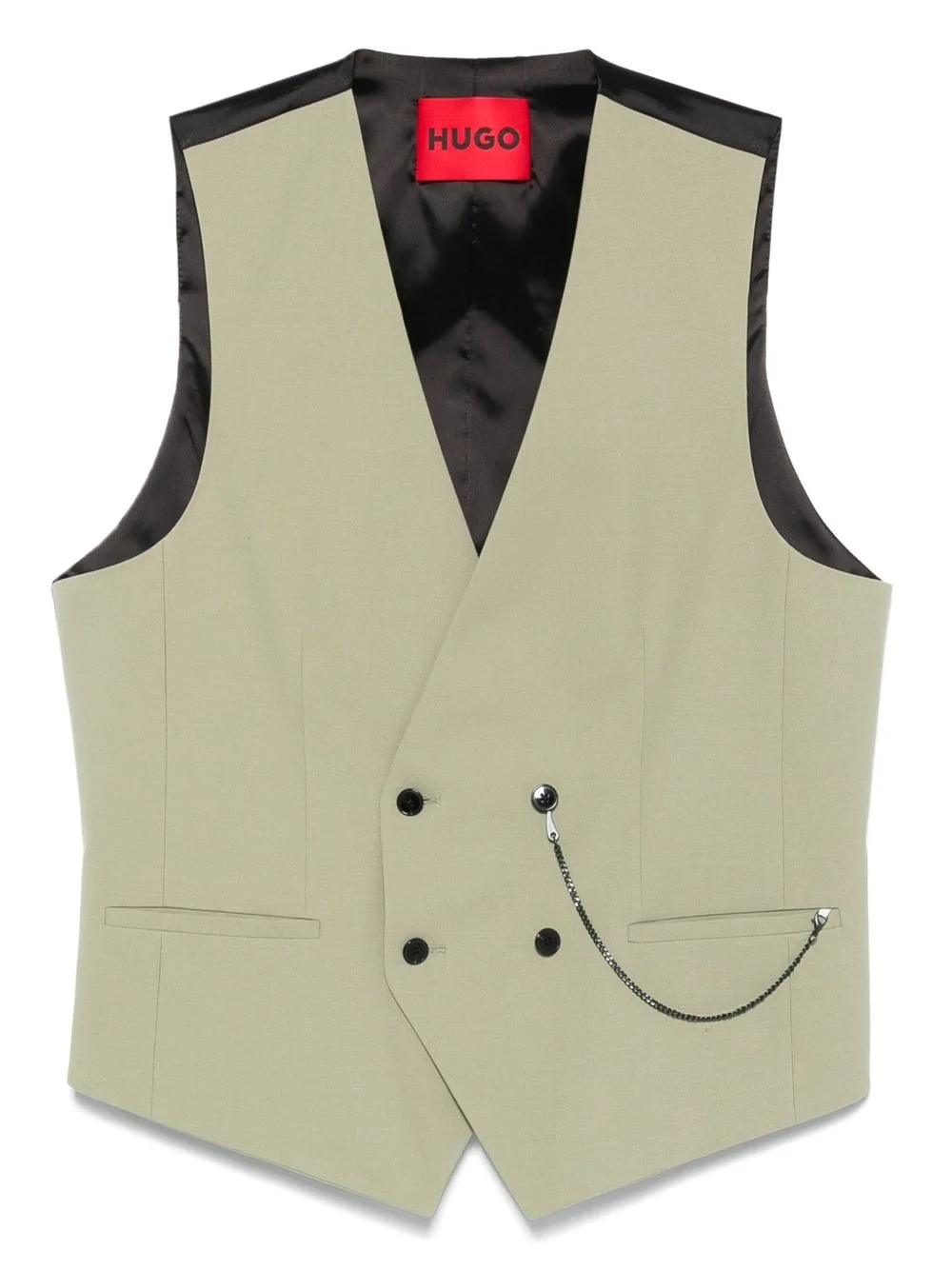 panelled waistcoat Highlights - Olive green - Double-breasted button fastening - Two side welt pockets - V-neck - Sleeveless Imported Composition Outer: Wool 51%, Polyester 44%, Elastane 5% Lining: Polyester 100% SIZE & FIT Model measurements Height 6 ft 2 in(1.89 m) Bust/Chest 36.22 in(92 cm) Hips 37.79 in(96 cm) Waist 29.52 in(75 cm) FittingInformation Designed for a slim fit, offering a comfortable fit that sits just away from the body The adjustable tabs allow for fitted preferences Made from a midweight fabric