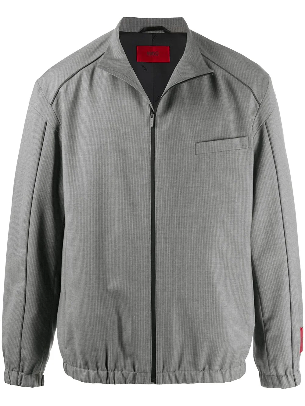 pinstriped pattern zipped jacket Highlights - Grey - Virgin wool - Pinstripe pattern - Front zip fastening - High neck - Elasticated hem - Chest welt pocket Imported Composition Lining: Viscose 100% Outer: Virgin Wool 100% SIZE & FIT Model measurements Height 6 ft 2 in(1.87 m) Bust/Chest 38.18 in(97 cm) Hips 36.61 in(93 cm) Waist 29.13 in(74 cm) FittingInformation This piece fits true to size. We recommend you get your regular size Cut for a loose fit Made with a mid-weight non-stretch fabric Washing instructions Dry Clean Only