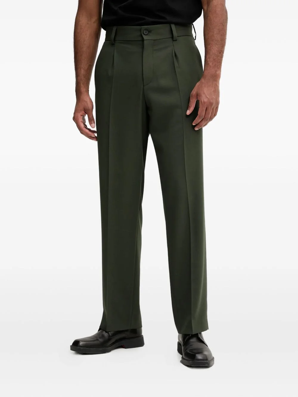 pleated-front trousers Highlights - Dark green - Pleated front - Button fastening - Side pockets - Straight leg - Flat front Imported Composition Fabric 100% Washing instructions Read Manufacturer Guidelines