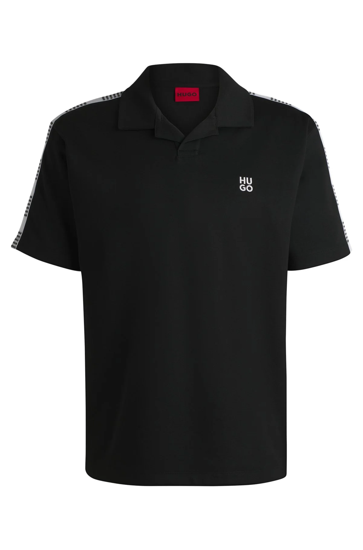 SIZE AND FIT The model wears a size M and is 6'2" tall with a, 35" chest, 27" waist and 35" hips. DETAILS Dalpars - 50531311 Infused with vintage edge, this HUGO Menswear polo shirt has checked tape and a relaxed fit. In coton with a clean covered placket. Relaxed fit Neckline: Polo collar Short sleeves QUALITY & CARE INSTRUCTIONS Iron Low Heat Machine Wash Cold Gentle Reduced Dry Clean Do Not Bleach Do Not Tumble Dry Quality: 52% Cotton, 48% Polyester