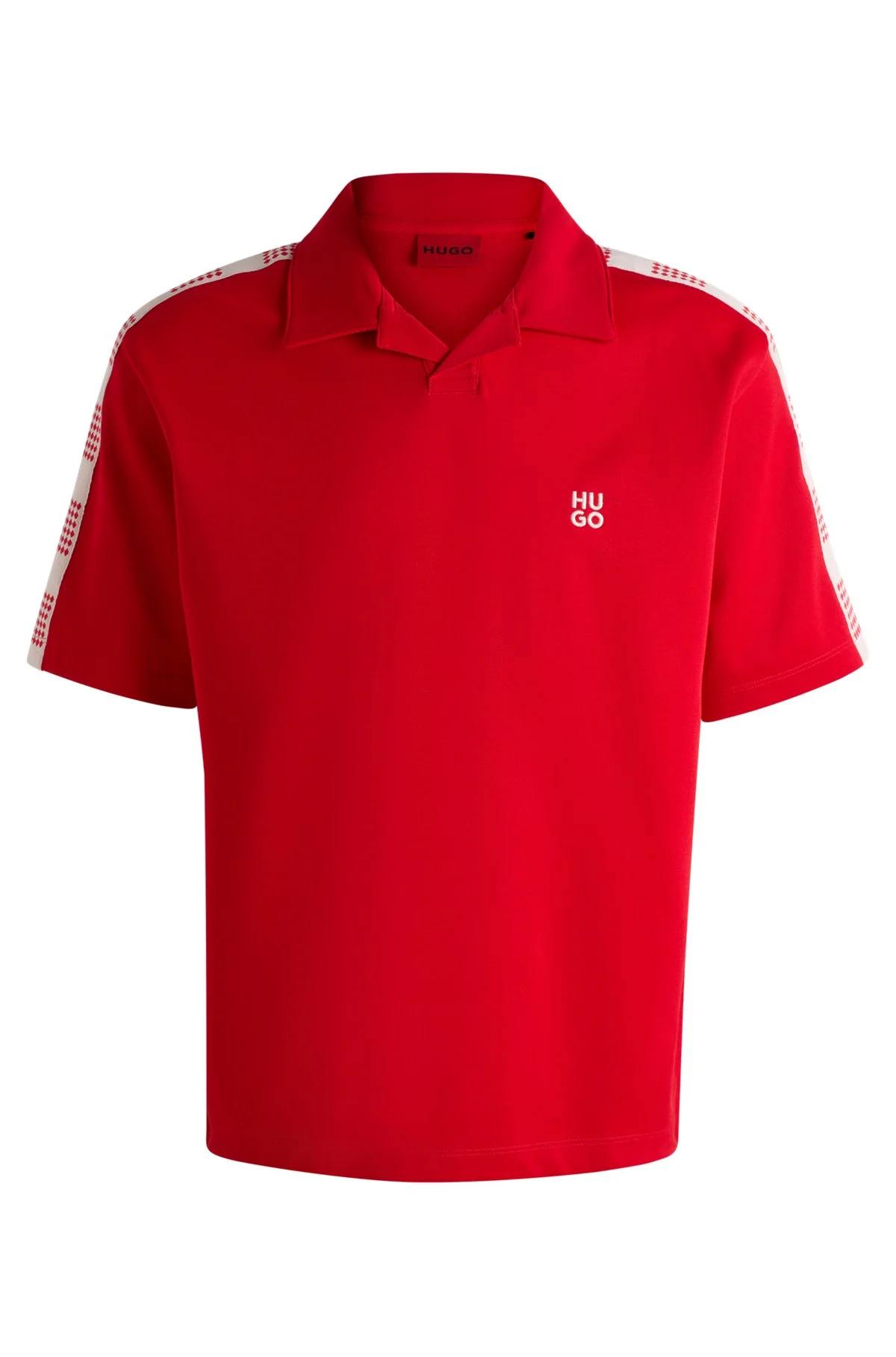SIZE AND FIT The model wears a size L and is 6'1" tall with a, 32" chest, 27" waist and 33" hips. DETAILS Dalpars - 50531311 Infused with vintage edge, this HUGO Menswear polo shirt has checked tape and a relaxed fit. In coton with a clean covered placket. Relaxed fit Neckline: Polo collar Short sleeves QUALITY & CARE INSTRUCTIONS Iron Low Heat Machine Wash Cold Gentle Reduced Dry Clean Do Not Bleach Do Not Tumble Dry Quality: 52% Cotton, 48% Polyester