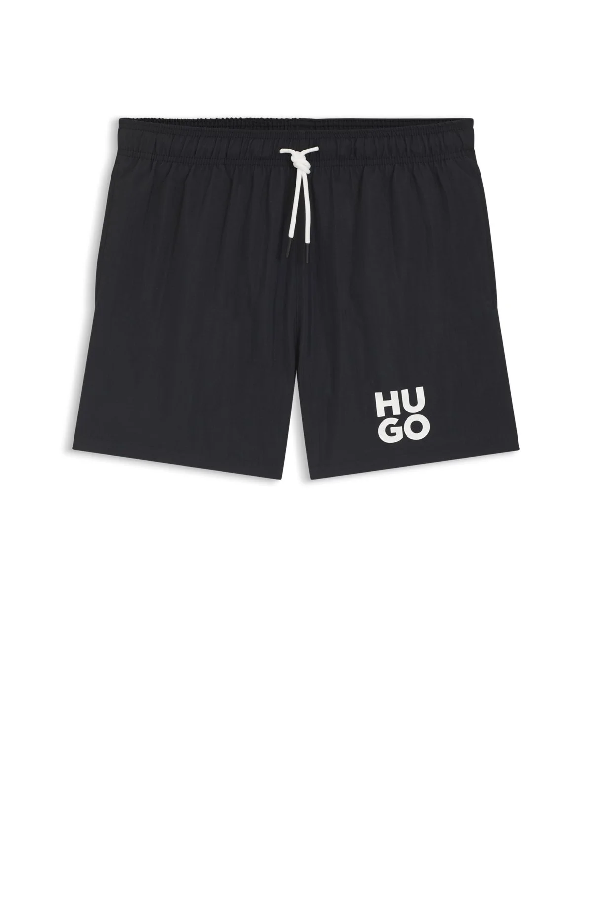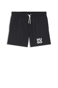 SIZE AND FIT The model wears a size M and is 6'2" tall with a, 36" chest, 28" waist and 36" hips. DETAILS With a printed stacked logo and coordinating cord, these HUGO Menswear swim shorts are naturally quick to dry. Comfortable elasticized waist. Fixed waistband Pockets bottom front: Side pockets Pockets bottom back: Welt pocket PAOLO - 50545464 QUALITY & CARE INSTRUCTIONS Machine Wash Cold Do Not Tumble Dry Material: 100% Polyamide, Lining: 100% Polyester, Inner lining: 100% Polyester Do Not Iron Do Not Dry Clean Do Not Bleach