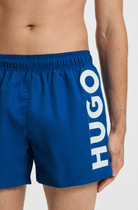 DETAILS Signature swim shorts, featuring a vertical logo print in contrast, by HUGO. This quick-dry pair has full lining for sportive comfort. Elastic waistband Drawstring Pockets bottom front: Side pockets Short length ABAS - 50513979 QUALITY & CARE INSTRUCTIONS Do Not Tumble Dry Do Not Dry Clean Do Not Iron Do Not Bleach Machine Wash Cold Quality: 100% Polyester, Lining: 100% Polyester