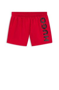 SIZE AND FIT The model wears a size M and is 6'2" tall with a, 38" chest, 31" waist and 38" hips. DETAILS ABAS - 50513979 Signature swim shorts, featuring a vertical logo print in contrast, by HUGO. This quick-dry pair has full lining for sportive comfort. Elastic waistband Drawstring Pockets bottom front: Side pockets Short length QUALITY & CARE INSTRUCTIONS Do Not Dry Clean Do Not Iron Do Not Tumble Dry Quality: 100% Polyester, Lining: 100% Polyester Machine Wash Cold Do Not Bleach