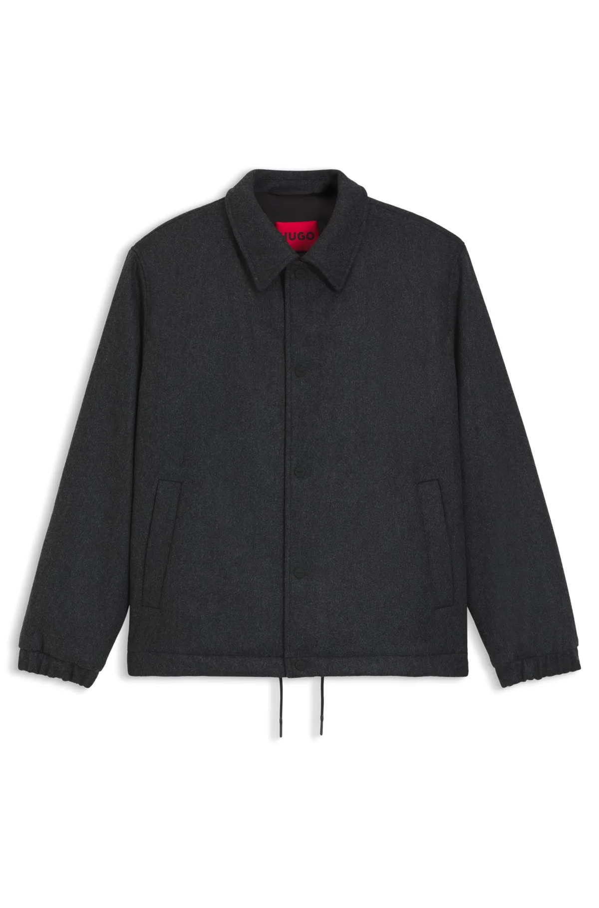 SIZE AND FIT The model wears a size M and is 6'0" tall with a, 35" chest, 29" waist and 33" hips. DETAILS A regular-fit padded coach jacket by HUGO Menswear. This style is crafted in a melange wool blend with signature details and an adjustable hem. Regular fit Kentkragen Stand collar Fastening top: Zip closure Pockets top: Zip pockets Inside zip pockets Elasticized cuffs Fully lined Standard length Fit back length: 67 cm (26 inches) Baks2511 - 50534811 QUALITY & CARE INSTRUCTIONS Iron Low Heat Do Not Bleach Do Not Wash Do Not Tumble Dry Material: 80% Virgin wool, 20% Polyamid, Lining: 100% Polyester, pocketing: 100% Cotton, Wadding: 100% Polyester Reduced Dry Clean