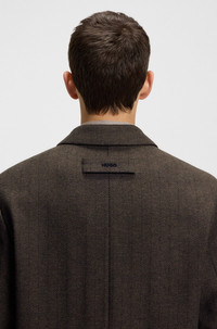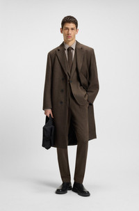 SIZE AND FIT The model wears a size M and is 6'2" tall with a, 35" chest, 27" waist and 35" hips. DETAILS Maldo2531 - 50542695 Woven with a classic herringbone, this HUGO Menswear coat has a clean concealed closure. Straight fit. Blended with soft wool. Regular fit Reverse lapels Number of buttons: 3 Pockets top: Welt pockets Inside welt pockets Kissing buttons on the cuff Back vent Fully lined Long length Fit back length: 98 cm (39 inches) QUALITY & CARE INSTRUCTIONS Do Not Tumble Dry Reduced Dry Clean Quality: 46% Cotton, 34% Wool, 12% Polyester, 8% Polyamid, Lining: 52% Polyester, 48% Viscose, pocketing: 100% Cotton Iron Low Heat Do Not Wash Do Not Bleach