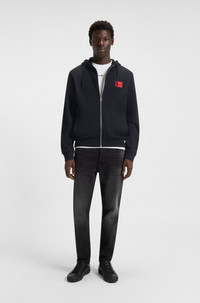 SIZE AND FIT The model wears a size L and is 6'2" tall with a, 31" chest, 26" waist and 35" hips. DETAILS Daple212 - 50447972 A zip-up hoodie by HUGO Menswear, cut to a regular fit in super-soft French terry with a contrasting logo label at the chest. Regular fit Neckline: Hooded Fastening top: Zip closure Long sleeves Ribbed cuffs QUALITY & CARE INSTRUCTIONS Quality: 100% Cotton, Waistband: 95% Cotton, 5% Elastane Do Not Tumble Dry Do Not Bleach Machine Wash Cold Gentle Iron Low Heat Reduced Dry Clean