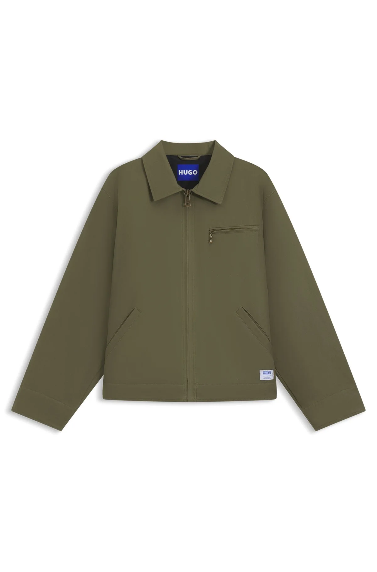SIZE AND FIT The model wears a size M and is 6'0" tall with a, 33" chest, 27" waist and 35" hips. DETAILS Blake2531 - 50548713 With a cross-shaped puller on the pocket zip, this padded HUGO Menswear jacket is a modern choice. Soft cotton. Regular fit with adjustable waist. Regular fit QUALITY & CARE INSTRUCTIONS Do Not Dry Clean Do Not Tumble Dry Iron Low Heat Machine Wash Cold Gentle Do Not Bleach Quality: 100% Cotton, Lining: 100% Polyester, Wadding: 100% Polyester