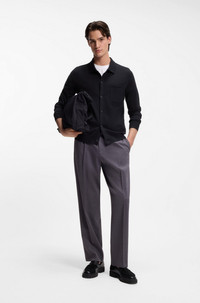 SIZE AND FIT The model wears a size L and is 6'2" tall with a, 35" chest, 28" waist and 36" hips. DETAILS With its soft knit and ribbed trims, this button-up HUGO Menswear jacket is easy to style up or down. Regular fit Regular fit Number of buttons: 4 or more buttons Patch chest pockets Standard length Fit back length: 68 cm (27 inches) San Jordan-CV - 50553663 QUALITY & CARE INSTRUCTIONS Do Not Dry Clean Iron Low Heat Do Not Tumble Dry Do Not Bleach Material: 72% Viscose, 28% Polyester Machine Wash Cold Gentle