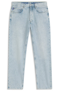 SIZE AND FIT The model wears a size 32/32 and is 6'2" tall with a, 35" chest, 27" waist and 35" hips. DETAILS Cut to a regular fit in slub-effect denim, these HUGO Menswear jeans have a washed-out light-blue tone. Rivets and logo trims. Regular fit Regular rise Button and zip closure Pockets bottom front: Side pockets Straight leg Pockets bottom back: Patch pocket Standard length Fit foot width: 40,0 cm (15.7 inches) Jonah - 50555950 QUALITY & CARE INSTRUCTIONS Machine Wash Cold Gentle Do Not Bleach Do Not Tumble Dry Iron Medium Heat Material: 100% Cotton (20% recycled), pocketing: 100% Cotton Do Not Dry Clean