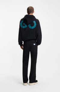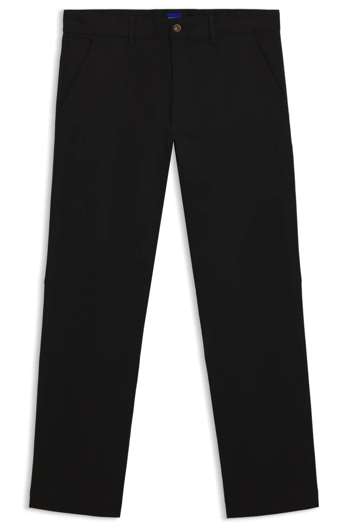 SIZE AND FIT The model wears a size 32/32 and is 6'0" tall with a, 33" chest, 27" waist and 35" hips. DETAILS With a logo trim and stitching details, these workwear-inspired HUGO Menswear trousers are great for everyday styling. Straight fit in stretch-cotton canvas. Regular fit Regular rise Button and zip closure Straight leg Pockets bottom front: Side slash pockets Pockets bottom back: Flap pocket Zarik253 - 50549720 QUALITY & CARE INSTRUCTIONS Quality: 98% Cotton, 2% Elastane, pocketing: 65% Polyester, 35% Cotton Machine Wash Cold Gentle Do Not Bleach Reduced Dry Clean Iron Low Heat Do Not Tumble Dry