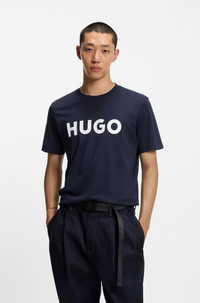 SIZE AND FIT The model wears a size M and is 6'2" tall with a, 34" chest, 29" waist and 35" hips. DETAILS A statement T-shirt by HUGO Menswear, easy to style with any casual look. Regular fit Soft cotton. Large HUGO logo print across the chest. Regular fit Neckline: Crew neck Short sleeves Dulivio - 50467556 QUALITY & CARE INSTRUCTIONS Material: 100% Cotton, Collar: 97% Cotton, 3% Elastane Do Not Tumble Dry Do Not Dry Clean Machine Wash Cold Gentle Do Not Bleach Iron Low Heat