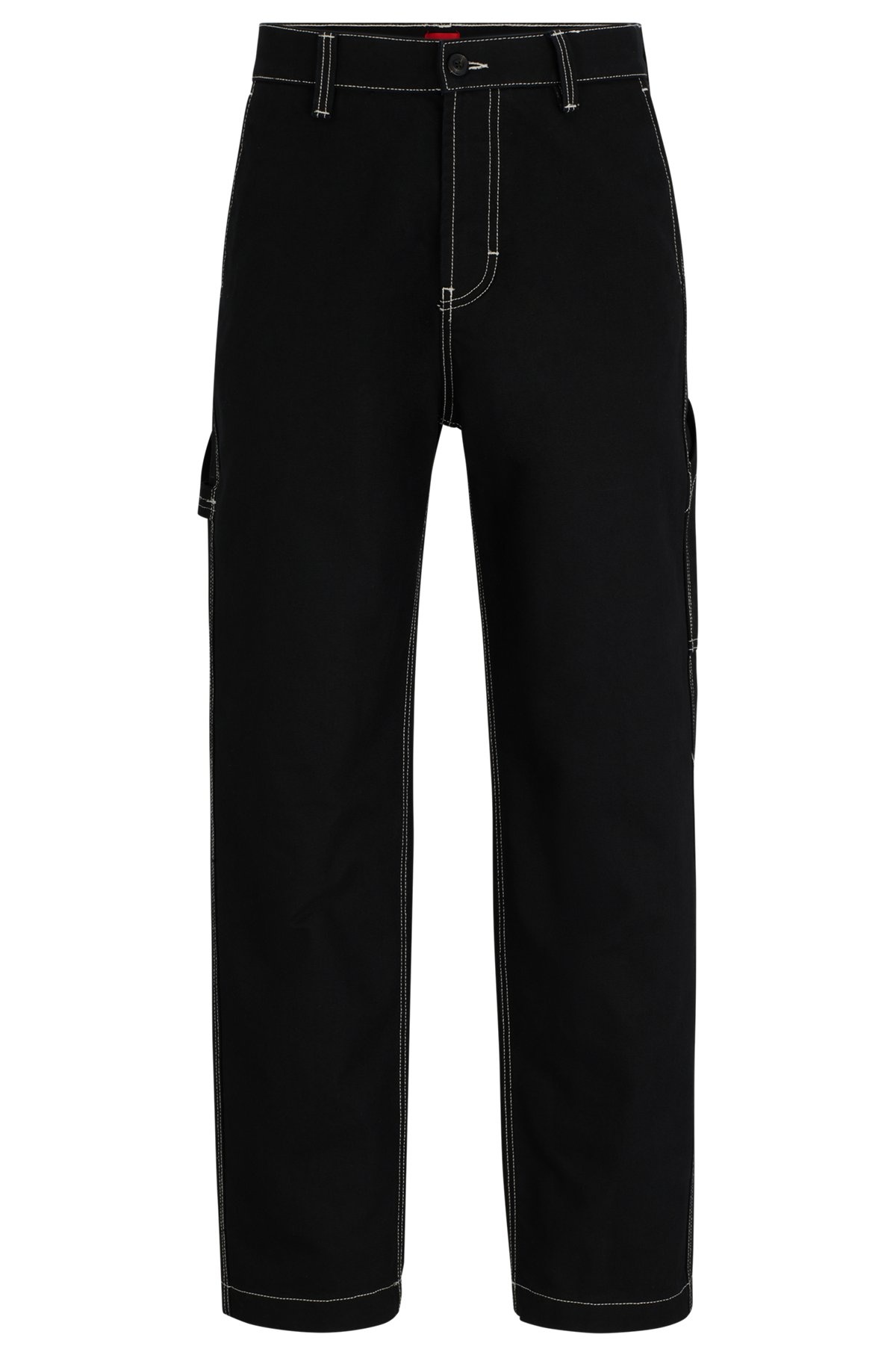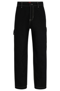 SIZE AND FIT The model wears a size 32R and is 6'0" tall with a, 34" chest, 27" waist and 36" hips. DETAILS Gion241 - 50505863 Regular-rise trousers in a straight fit by HUGO Menswear, crafted in heavyweight cotton with cargo pockets and contrast stitching. Regular fit Regular rise Button and zip closure Straight leg QUALITY & CARE INSTRUCTIONS Quality: 100% Cotton, pocketing: 65% Polyester, 35% Cotton Reduced Dry Clean Do Not Bleach Do Not Tumble Dry Iron Low Heat Machine Wash Cold Gentle