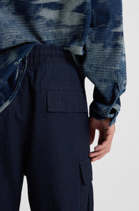 SIZE AND FIT The model wears a size M and is 6'2" tall with a, 35" chest, 27" waist and 35" hips. DETAILS Gadic242W - 50552121 In a relaxed fit with a straight leg, these HUGO Menswear cargo trousers provide a modern foundation. Denim-look ripstop. Made from 100% cotton. Relaxed fit Regular rise Elastic Waistband Straight leg Pockets bottom front: Side slash pockets Pockets bottom back: Flap pocket QUALITY & CARE INSTRUCTIONS Do Not Tumble Dry Machine Wash Cold Gentle Quality: 100% Cotton, pocketing: 65% Polyester, 35% Cotton Reduced Dry Clean Iron Low Heat Do Not Bleach