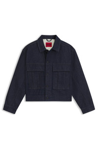 SIZE AND FIT The model wears a size M and is 6'2" tall with a, 34" chest, 29" waist and 35" hips. DETAILS With its laid-back fit in weighty Japanese denim, this HUGO Menswear jacket is an ideal trans-seasonal layer. Pair with the matching trousers. Relaxed fit Short length HUGO 083 - 50542915 QUALITY & CARE INSTRUCTIONS Machine Wash Warm Dry Clean Only Material: 100% Cotton, lining top: 100% Cotton Do Not Bleach Do Not Tumble Dry Iron Medium Heat