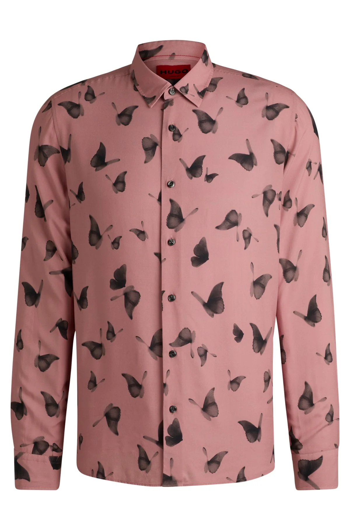 SIZE AND FIT The model wears a size M and is 6'2" tall with a, 35" chest, 27" waist and 35" hips. DETAILS Emero - 50534247 A long-sleeved shirt in a relaxed fit by HUGO Menswear. This statement piece is crafted in soft poplin printed with a seasonal motif. Relaxed fit Kent collar Barrel cuffs Standard length Fit back length: 76 cm (30 inches) QUALITY & CARE INSTRUCTIONS Do Not Bleach Do Not Tumble Dry Machine Wash Cold Do Not Dry Clean Quality: 100% Viscose Iron Low Heat