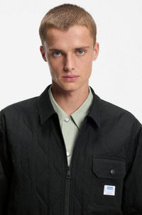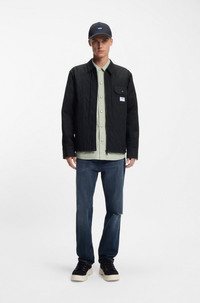 SIZE AND FIT The model wears a size M and is 6'2" tall with a, 35" chest, 27" waist and 35" hips. DETAILS Add a contemporary touch to business looks with the lightweight padding and relaxed fit of this HUGO Menswear cotton shirt. Woven logo label trim. Relaxed fit Camp collar Barrel cuffs Short length Fit back length: 70 cm (28 inches) Ebey - 50555399 QUALITY & CARE INSTRUCTIONS Do Not Tumble Dry Material: 100% Cotton, Inner lining: 100% Cotton, Wadding: 100% Polyester (80% recycled) Do Not Bleach Machine Wash Cold Iron Low Heat Do Not Dry Clean