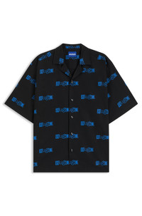 SIZE AND FIT The model wears a size M and is 6'2" tall with a, 34" chest, 27" waist and 36" hips. DETAILS Eligino - 50545226 Add impact to everyday looks with this HUGO Menswear shirt. Cut to a laid-back fit in soft cotton. Statement logos printed all over. Relaxed fit Reverse lapels Patch chest pockets Short length Fit back length: 71 cm (28 inches) QUALITY & CARE INSTRUCTIONS Quality: 100% Cotton Do Not Dry Clean Do Not Tumble Dry Machine Wash Cold Do Not Bleach Iron Low Heat