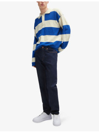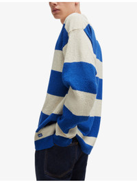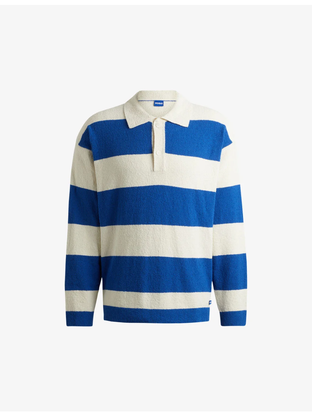 PRODUCT DETAILS - HUGO stretch-knit polo - 66% recycled cotton , 21% polyester, 12% polyamide, 1% elastane - Exposed button fastening at neck - Relaxed fit, polo collar with buttons, long sleeves, all-over stripes - Hand wash - Model is 6ft 2in/1.88m and wears a size medium - Midweight, non-stretch Ref: R04252872