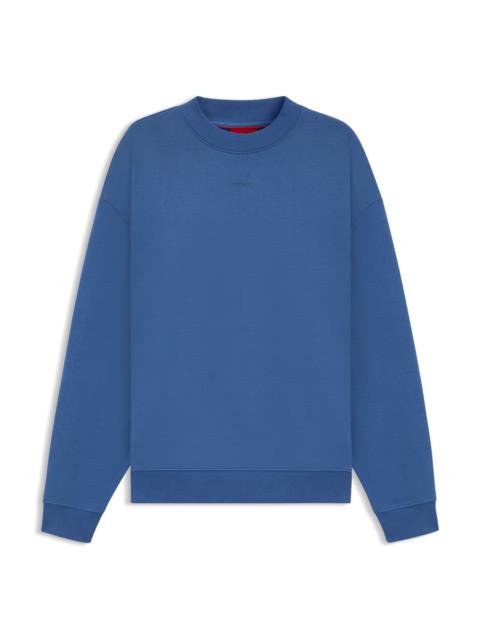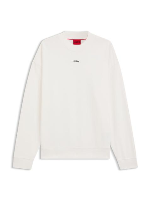 SIZE AND FIT The model wears a size M and is 6'2" tall with a, 31" chest, 26" waist and 35" hips. DETAILS Dapocrew - 50525892 A minimalist sweatshirt by HUGO. Featuring a high-density logo print at the chest, this essential layer comes in soft French-terry cotton. Relaxed fit. Relaxed fit Neckline: Crew neck Long sleeves Ribbed cuffs Standard length QUALITY & CARE INSTRUCTIONS Do Not Dry Clean Quality: 100% Cotton Do Not Tumble Dry Do Not Bleach Machine Wash Cold Gentle Iron Low Heat