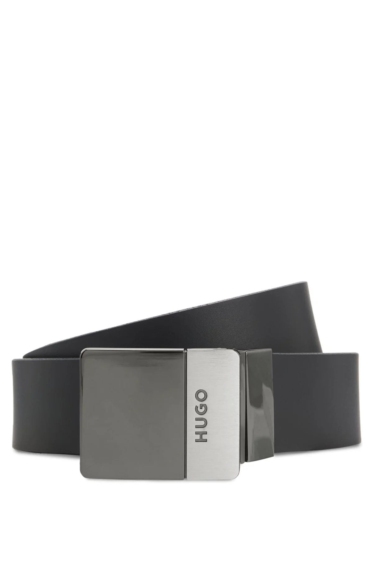 SIZE AND FIT The model wears a size pce. and is 6'1" tall with a, 33" chest, 25" waist and 35" hips. DETAILS Refresh your collection with the dual colors and buckles of this 3.5cm HUGO Menswear belt. Crafted in rich Italian leather. Made in Italy. Hardware finishing: Polished gunmetal hardware Engraved logo on closure Godeon-soft_Gb35_pp - 50558788 QUALITY & CARE INSTRUCTIONS Material: 100% Cow leather