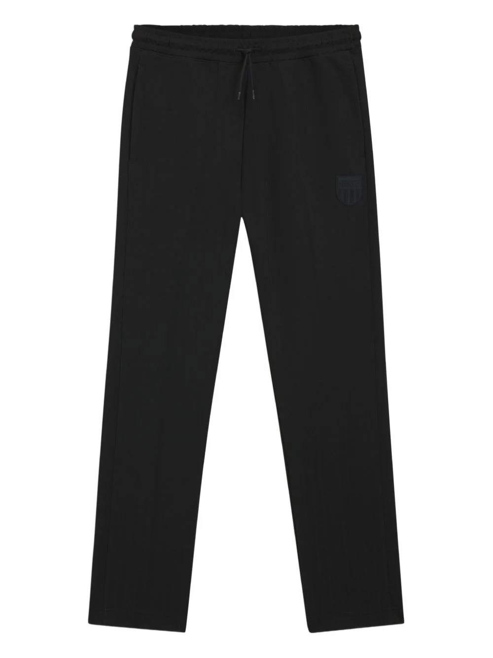 ribbed logo track pants Highlights - Black - Ribbed texture - Drawstring fastening - Logo patch Imported Composition Cotton 52%, Polyester 48% Washing instructions Machine Wash