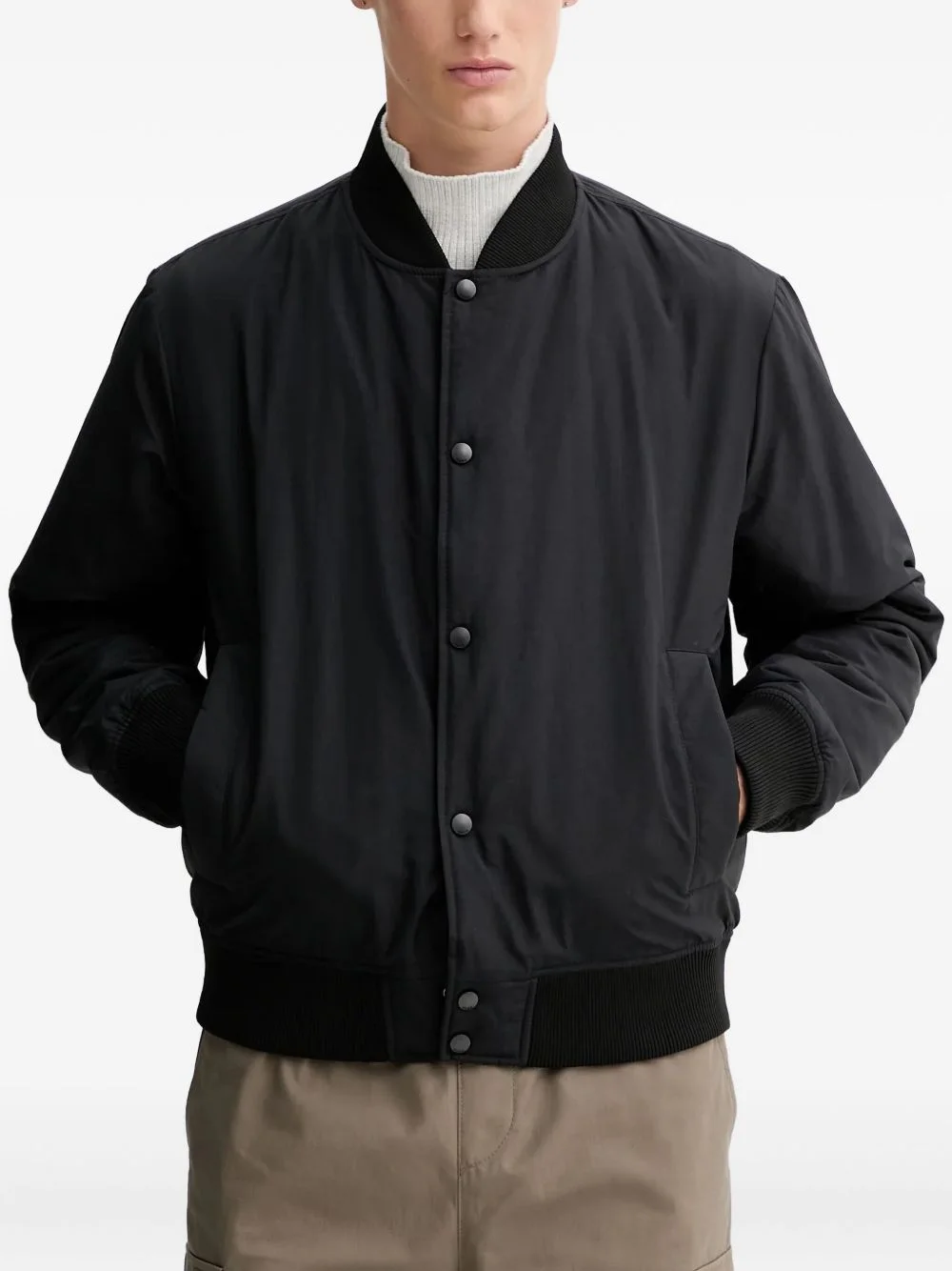 ribbed-trim graphic-print jacket Highlights - Black - Graphic at the rear - Ribbed hem - Ribbed cuffs - Ribbed collar - Press-stud fastening Imported Composition Fabric 100%
