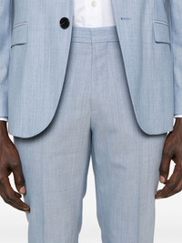 single-breasted suit Highlights - Light blue - Front button fastening - Concealed front fastening - Chest welt pocket - Two diagonal pockets to the sides Imported Composition Outer: Virgin Wool 58%, Polyester 41%, Elastane 1% Lining: Polyester 100%, Viscose 100% SIZE & FIT Model measurements Height 6 ft 0 in(1.84 m) Bust/Chest 37.79 in(96 cm) Hips 37 in(94 cm) Waist 31.49 in(80 cm) FittingInformation Tailored for a slim fit, offering a comfortable fit that sits just away from the body The unfinished hems allow for the length to be altered Made from a midweight fabric
