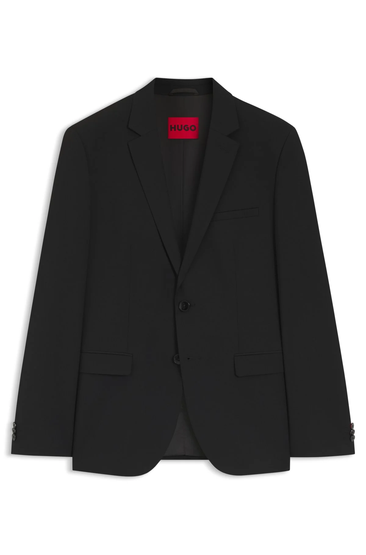 DETAILS Arti253X-MH - 50540157 In performance-stretch cloth made with wool, this HUGO Menswear blazer is an everyday must. Super-slim fit. Plain weave for easy styling. Extra-slim fit Notched lapels Number of buttons: 2 Welt chest pockets Pockets top: Flap pockets Inside jet pocket with button Fully lined Fit back length: 73 cm (29 inches) QUALITY & CARE INSTRUCTIONS Quality: 60% Wool, 36% Polyester, 4% Elastane, Lining: 97% Polyester, 3% Elastane, Sleeve lining: 100% Polyester Do Not Tumble Dry Do Not Bleach Iron Low Heat Reduced Dry Clean Do Not Wash