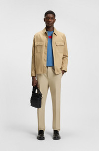 SIZE AND FIT The model wears a size M and is 6'2" tall with a, 31" chest, 26" waist and 35" hips. DETAILS Genar253 - 50541394 In a contemporary slim fit that widens through the leg, these HUGO Menswear chinos are a casual essential. Brushed, mercerized cotton for elevated softness. Slim fit Regular rise Button and zip closure Wide leg Pockets bottom front: Side slash pockets QUALITY & CARE INSTRUCTIONS Reduced Dry Clean Do Not Tumble Dry Iron Low Heat Do Not Bleach Machine Wash Cold Gentle Quality: 100% Cotton, pocketing: 65% Polyester, 35% Cotton