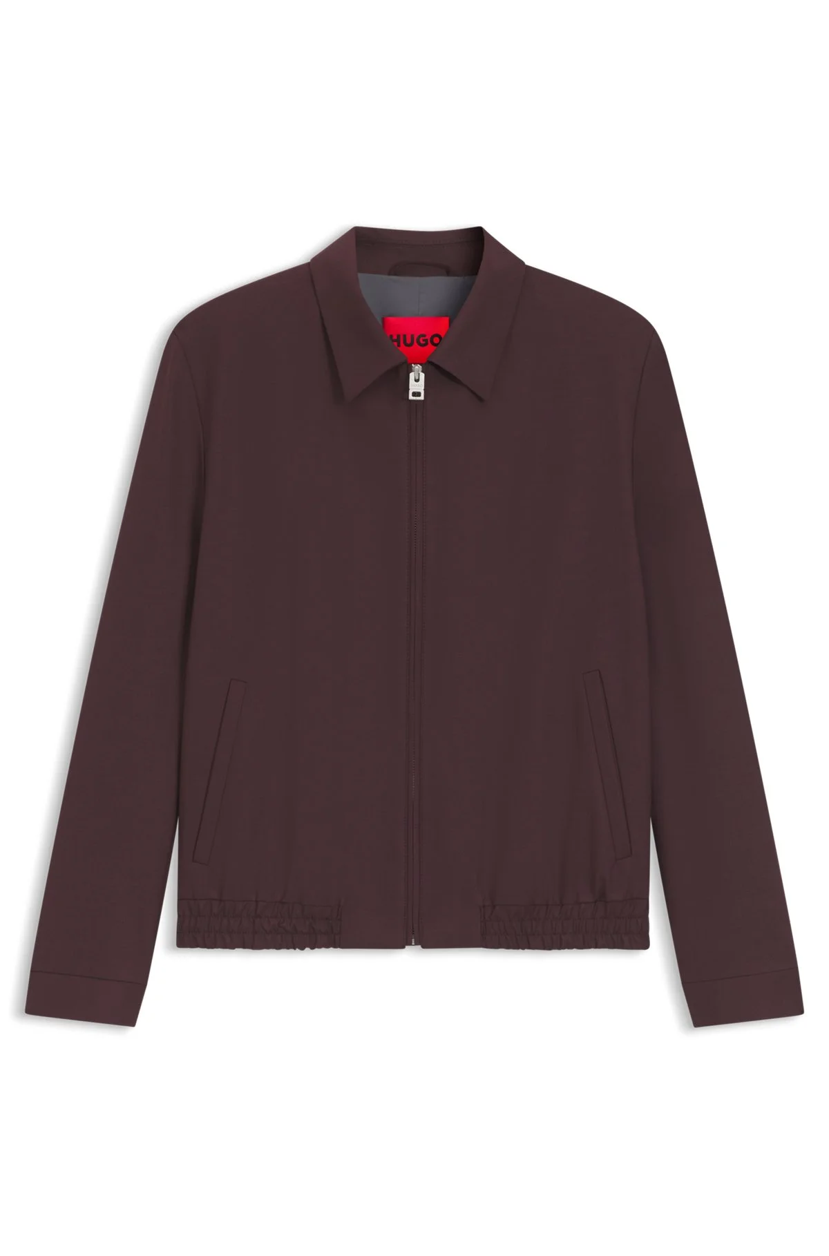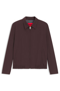 SIZE AND FIT Slim fit The model wears a size 38R and is 6'0" tall with a, 35" chest, 29" waist and 33" hips. DETAILS Invest in this slim-fitting HUGO Menswear jacket for formal style with easy movement. Crafted in stretchy wool-blend poplin with a zip closure. Slim fit Fully lined Hellys261X - 50554288 QUALITY & CARE INSTRUCTIONS Iron Low Heat Material: 51% Wool, 44% Polyester, 5% Elastane, Lining: 100% Polyester, Sleeve lining: 100% Polyester Do Not Bleach Do Not Tumble Dry Do Not Wash Reduced Dry Clean