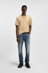 SIZE AND FIT The model wears a size 32/32 and is 6'2" tall with a, 35" chest, 27" waist and 35" hips. DETAILS HUGO 708 - 50542690 With their slim fit and straight leg, these HUGO Menswear jeans provide a modern casual profile. Stretch denim with a vintage blue wash. Slim fit Regular rise Button and zip closure Pockets bottom front: Side pockets Straight leg Pockets bottom back: Patch pocket Standard length Fit foot width: 36,0 cm (14.2 inches) QUALITY & CARE INSTRUCTIONS Do Not Tumble Dry Machine Wash Cold Gentle Iron Medium Heat Do Not Bleach Quality: 81% Cotton, 18% Lyocell, 1% Elastane Do Not Dry Clean