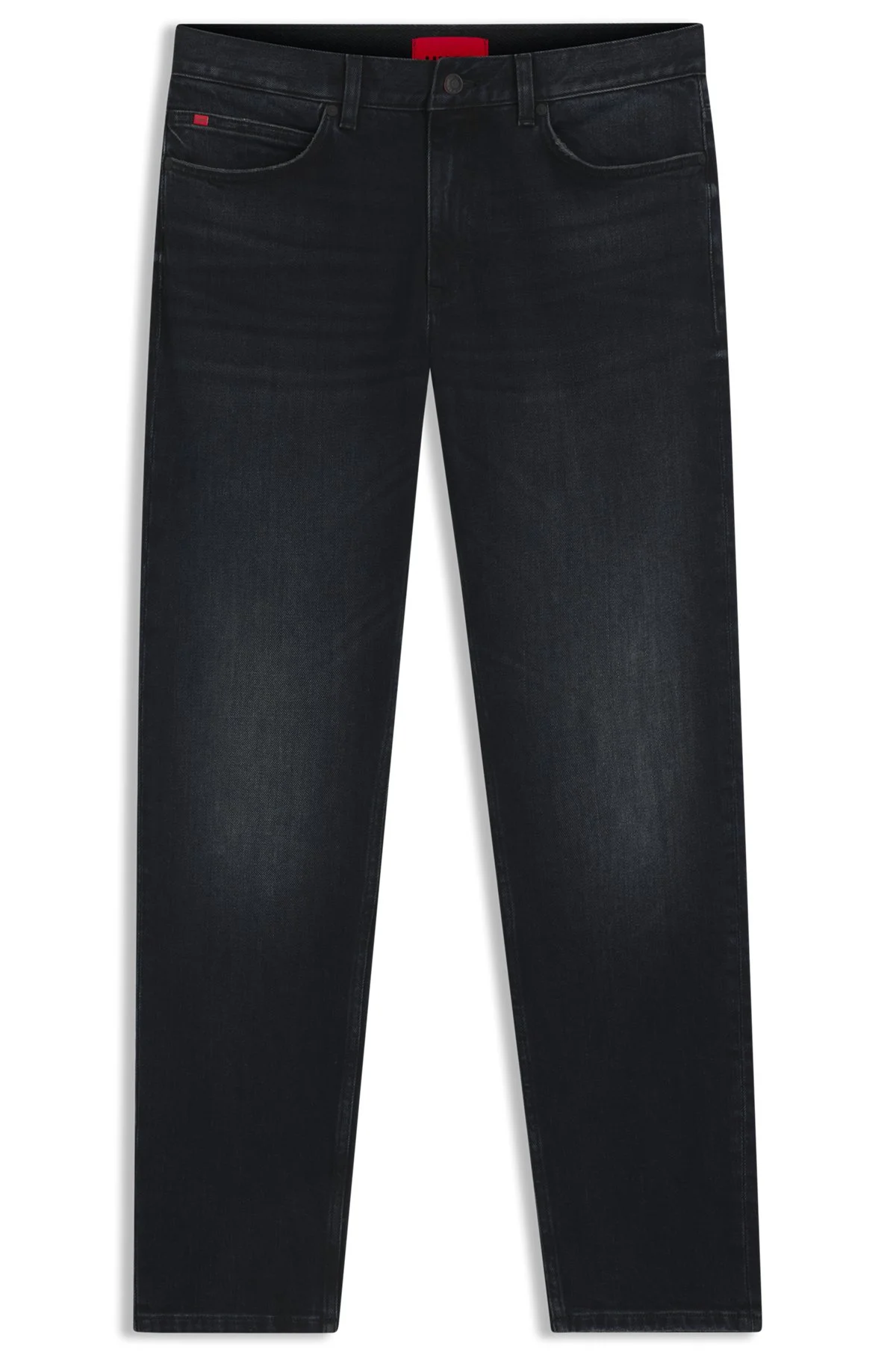 DETAILS Revive your casual looks with the dark-blue tone and authentic grindings of these HUGO Menswear jeans. Slim fit with a straight leg. Slim fit Regular rise Button and zip closure Pockets bottom front: Side pockets Straight leg Pockets bottom back: Patch pocket Standard length Fit foot width: 36,0 cm (14.2 inches) HUGO 708 - 50547255 QUALITY & CARE INSTRUCTIONS Quality: 99% Cotton (5% recycled), 1% Elastane, pocketing: 100% Cotton Machine Wash Cold Gentle Do Not Tumble Dry Iron Medium Heat Do Not Bleach Do Not Dry Clean
