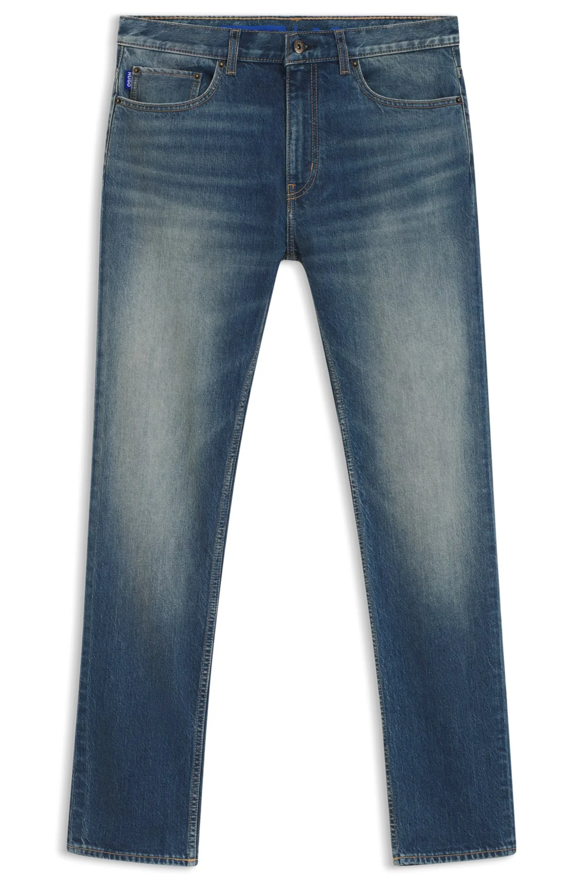 DETAILS Ash - 50541564 With their slim fit and straight leg, these HUGO Menswear jeans are so easy to style. Blue stretch denim with a fresh green cast. Slim fit Regular rise Button and zip closure Pockets bottom front: Side pockets Straight leg Pockets bottom back: Patch pocket Standard length Fit foot width: 36,0 cm (14.2 inches) QUALITY & CARE INSTRUCTIONS Machine Wash Cold Gentle Iron Medium Heat Do Not Dry Clean Do Not Bleach Quality: 99% Cotton, 1% Elastane, pocketing: 100% Cotton Do Not Tumble Dry