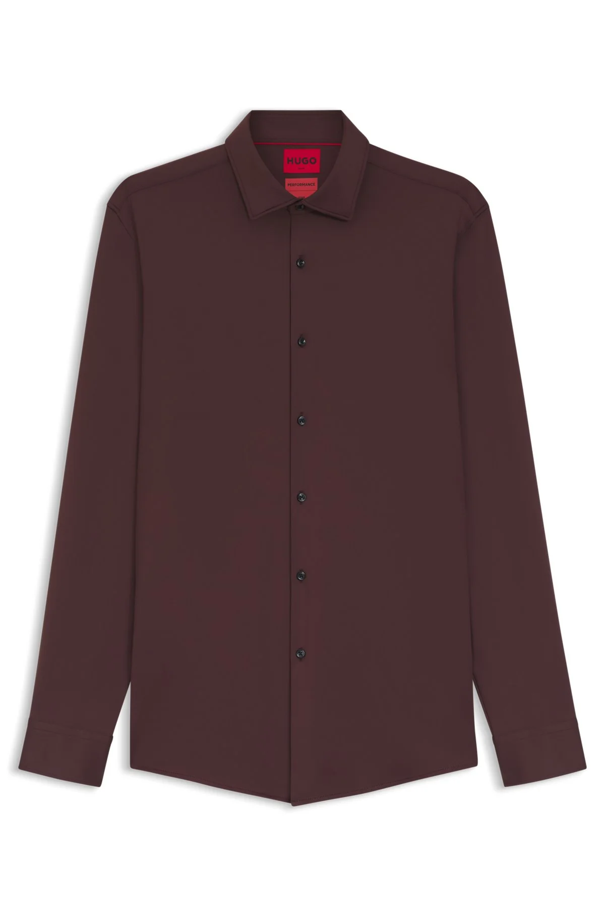 DETAILS A long-sleeved business shirt by HUGO Menswear. Crafted in performance-stretch jersey for advanced comfort, this wardrobe essential is tailored to a narrow fit for a clean profile. Signature red piping trims the inner collar to deliver typical HUGO edge. Slim fit Kentkragen Barrel cuffs Standard length Kenno - 50481195 QUALITY & CARE INSTRUCTIONS Machine Wash Cold Gentle Do Not Bleach Do Not Dry Clean Do Not Tumble Dry Iron Low Heat Material: 90% Polyamid, 10% Elastane