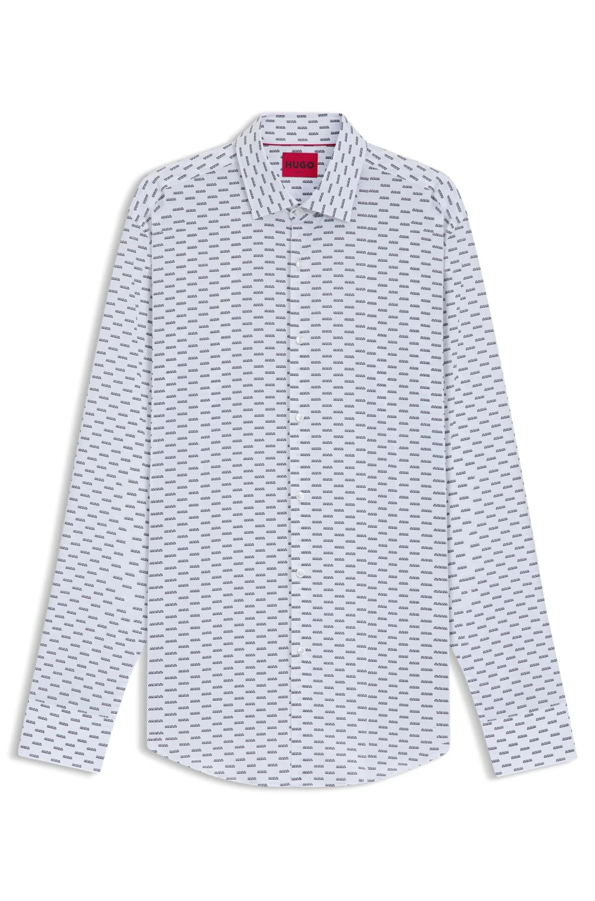 DETAILS Kenno - 50544929 Cut to a contemporary slim fit, this HUGO Menswear shirt is printed with a creative micro motif for versatile style. Crafted in breathable cotton poplin. Slim fit Kentkragen Barrel cuffs Standard length QUALITY & CARE INSTRUCTIONS Machine Wash Cold Do Not Tumble Dry Quality: 100% Cotton Do Not Dry Clean Iron Low Heat Do Not Bleach