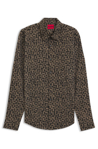 SIZE AND FIT The model wears a size M and is 6'2" tall with a, 34" chest, 27" waist and 36" hips. DETAILS Featuring a bold all-over print, this HUGO Menswear shirt adds modern energy to everyday looks. Cut to a slim fit. Breathable cotton poplin. Slim fit Kentkragen Barrel cuffs Standard length Fit back length: 75 cm (30 inches) Ermo - 50545349 QUALITY & CARE INSTRUCTIONS Do Not Tumble Dry Iron Low Heat Do Not Dry Clean Do Not Bleach Quality: 100% Cotton Machine Wash Cold