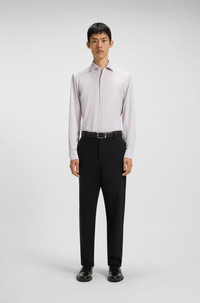 DETAILS Kenno - 50544942 Created in performance-stretch jersey, this HUGO Menswear shirt offers all-day comfort for busy days at the office. Slim fit. Modern print all over. Slim fit Kent collar Barrel cuffs Standard length QUALITY & CARE INSTRUCTIONS Iron Low Heat Quality: 90% Polyamid, 10% Elastane Do Not Bleach Do Not Tumble Dry Machine Wash Cold Gentle Do Not Dry Clean