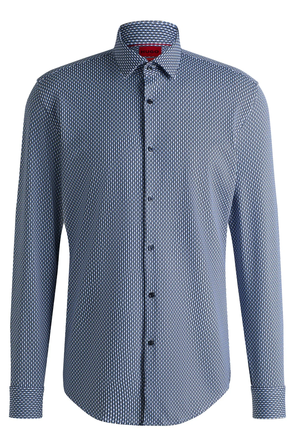 DETAILS Kenno - 50539731 In a streamlined fit, this HUGO Menswear shirt is a strong contender for any modern wardrobe. Crafted in performance-stretch jersey for flexible comfort. Slim fit Kent collar Barrel cuffs Standard length QUALITY & CARE INSTRUCTIONS Quality: 90% Polyamid, 10% Elastane Do Not Dry Clean Iron Low Heat Machine Wash Cold Gentle Do Not Tumble Dry Do Not Bleach