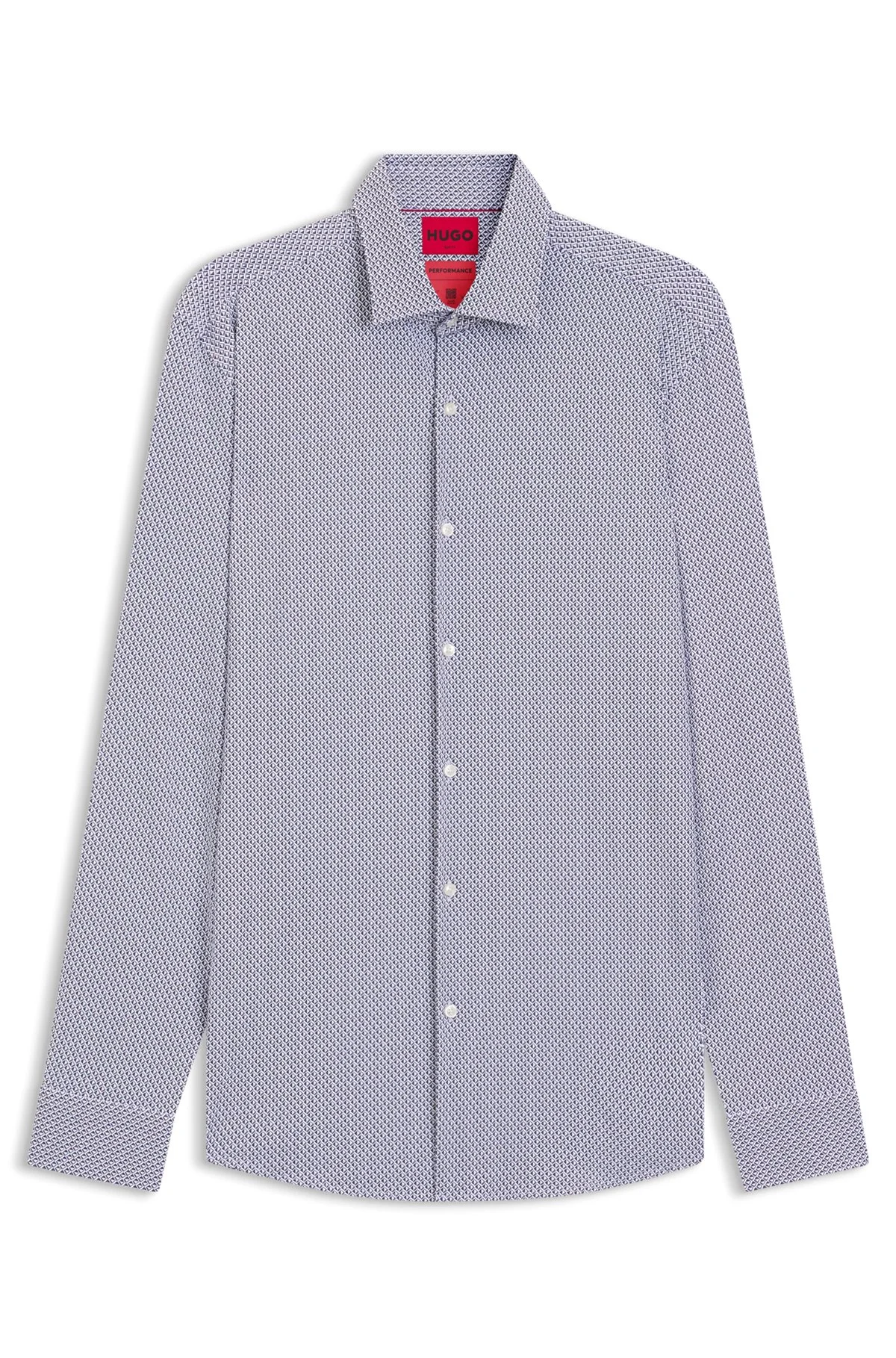 SIZE AND FIT The model wears a size 15.5 and is 6'1" tall with a, 34" chest, 29" waist and 34" hips. DETAILS Refresh your business capsule with the playful print of this HUGO Menswear shirt. Cut to a slim fit in super-stretch jersey. Slim fit Kentkragen Barrel cuffs Standard length Kenno - 50550524 QUALITY & CARE INSTRUCTIONS Do Not Bleach Machine Wash Cold Gentle Do Not Dry Clean Iron Low Heat Material: 90% Polyamid, 10% Elastane Do Not Tumble Dry