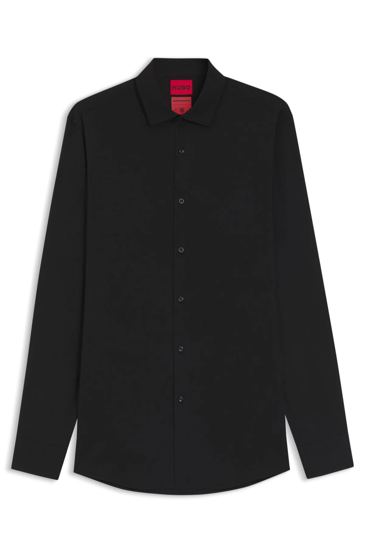 DETAILS In soft, washed fabric with stretch for total comfort, this HUGO Menswear shirt is a polished business essential. Tailored to a streamlined fit. Slim fit Kentkragen Barrel cuffs Standard length Kenno - 50551242 QUALITY & CARE INSTRUCTIONS Do Not Tumble Dry Do Not Dry Clean Iron Low Heat Material: 75% Viscose, 23% Polyester, 2% Elastane Hand Wash Only Do Not Bleach