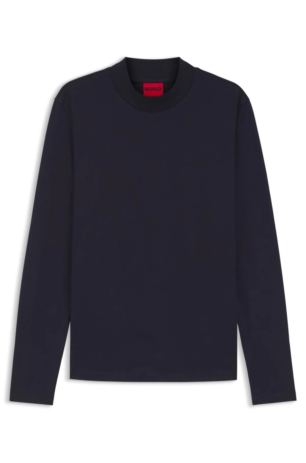 DETAILS In a clean fit with a mock collar, this HUGO Menswear T-shirt is ideal for layering with tailoring. Cotton jersey with a soft mercerized finish. Slim fit Neckline: Mock Neck Long sleeves Standard length Dimersolo - 50544281 QUALITY & CARE INSTRUCTIONS Do Not Bleach Material: 100% Cotton Do Not Tumble Dry Machine Wash Cold Gentle Iron Low Heat Reduced Dry Clean